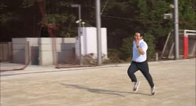 映像を作成する際,ぴったりの時間に走るのはなかなか難しいので,微調整は映像編集で行います。また,道のりの違いに気付かせるため,スタート地点をそろえつつ,C先生だけゴールの位置を変えます。スタートやゴール地点には,普段から見慣れてる朝礼台やサッカーゴールが映り込むようにします。そうすれば,ゴール地点の位置の違いに気付きやすくなります。