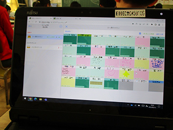 画用紙の色に対応したロイロノート・スクール(株式会社LoiLo)の色シートを提出させることで,選んだ課題の意思表示と児童同士が一目で共有できるようにした。