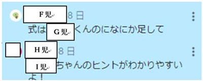のように,E児のわからなさに対する他の児童からのコメントが書き込まれた。