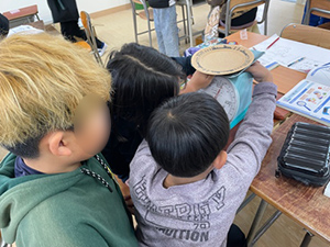 また,綿や土を調べられるように,同じ体積になるような器を用意し,綿や土を詰めて重さを量れるようにした。銅は同じ体積のものを用意できず,銅と鉄,アルミニウムの同じ大きさの板を用意し,3つで比べられるようにした。また,ガラスやレンガなどいくつかの素材については探してみたが用意できず,子どもには用意できなかったことを伝えた。用意できなかったものについては子どもも納得したようであった。子どもとともに授業を作っていくためには,子どもが自分たちの考えや思いが大切にされると思えることが大切であり,子どもが頼んだもので,用意できなかったものがあれば,子どもに説明し納得できるようにすることが大切である。