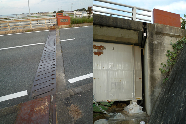 橋のつなぎ目を路上から見たものと橋の横から見たもの