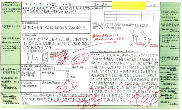 その結果,改良されたワークシートに対する子どもの反応はよく,これまで以上に意欲的に記述していた。また,ワークシートの項目を自分達で考えることにより,ワークシートの意図を理解した上で書くことができるようになっている。