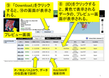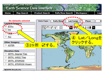 ここでは,緯度経度情報を用いて,衛星データを入手する方法を記述する。