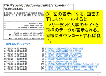 (EarthSat-Orthorectifiedと表記されているデータは,同じ観測日のものが, 「GLS」にもあるので,それを使うようことをすすめたい。)