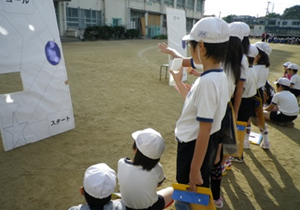 まず,光の迷路をクリアするという課題を与え,試行活動をグループで行いました。子どもは,迷路をクリアすると「やったー」「もう一回やろう」などと声を上げ,何度もチャレンジする姿が見られました。この姿から,光の迷路は,子どもの活動欲求を高める教材であると確かめることができました。