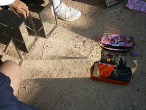 「②光が集まると暖かくなるのか」という問題について,たくさんの実験方法が考案され,実験を行うことができました。例えば,チョコレートに光を集めて,溶ける時間と鏡の枚数との関係を調べる実験やチョコレートの代わりに飴や氷などで実験するグループも見られました。また,複数の鏡を輪のようにして並べ,ソーラークッカーのようにして溶かす実験や,溶かすものを置く台紙の色を様々な色にして試す実験も見られました。