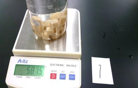 そして,溶けたということは,塩や砂糖がどうなったのかを重さに注目させ,予想させたり仮説を考えさせたりした。『水にとけて見えなくなったものの重さはどうなるだろう。』という課題に対して「見えないということは消えてなくなるので重さはない」という児童もいれば,「塩味があるから重さも存在する」,「重さが味に変わったので重さはなくなる」,「よく見ると水溶液のかさが増しているので透明になっただけでものは存在する」など,いろいろと自分なりの予想や仮説がでた。討議しているうちに意見が変わったり,少数派でも自分なりの考えを主張したりと白熱した論議になった。しかし最終は,実験によって自分の仮説を明らかにするということでグループに分かれ実験方法を考えさせた。