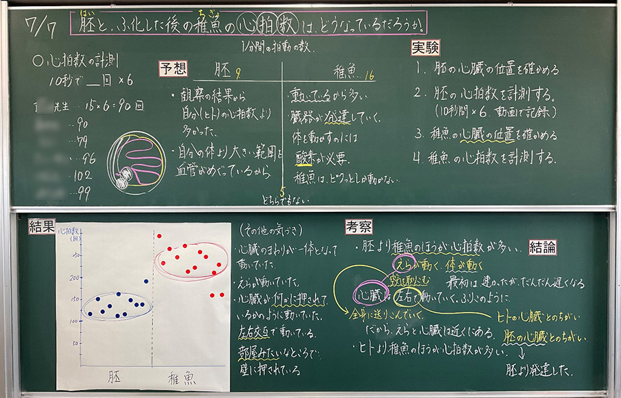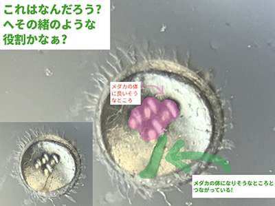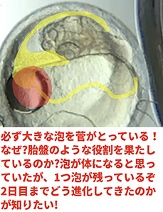 また,子どもたちは,「メダカの卵の中の血流が,メダカの体以外のところにも流れている」という点に気付いた。体の中に血液が流れているのは私たち人間のようすからイメージできるが,体の外にも血液が流れている事実はインパクトが強かったであろう。