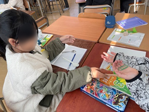 そこで,単元を算数の重さの学習を振り返ることから始めた。算数の学習を思い出し,単位や道具の名前を言ったり,単位の関係について振り返ったりした。「重さについて学習しているし,重さのことがよくわかるよね。」と話し,「重さって何?」と問うた。「体重」と子どもから出てきたが,そこで子どもたちは沈黙し,後が続かなかった。ここで,子どもは「重さ」に意識が向き,あまりよくわかっていないことに気づいた。そして,いろいろな身の回りのものを用いて,重さを感じる体験活動を行うことを提案した。子どもは手の平にのせ重さを感じたり,2つのものを持って重さを比べたり,重さの順に並べたり,少し投げ上げてみたりと,ものと関わり重さについて考える姿が見られた。