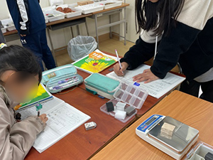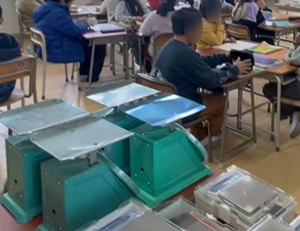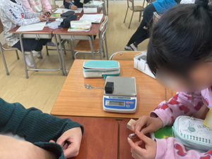 実験を始める前に,教科書の巻末の道具の使い方で電子てんびんの使い方を確認した。より重いものを量るために算数で子どもが使った台ばかりを用意し,子どもが使う道具を選べるようにした。また,教師が用意した道具は各グループに配るのではなく,まとめて置いておくようにした。こうすることで,子どもが何を量るのかを選べるようにした。