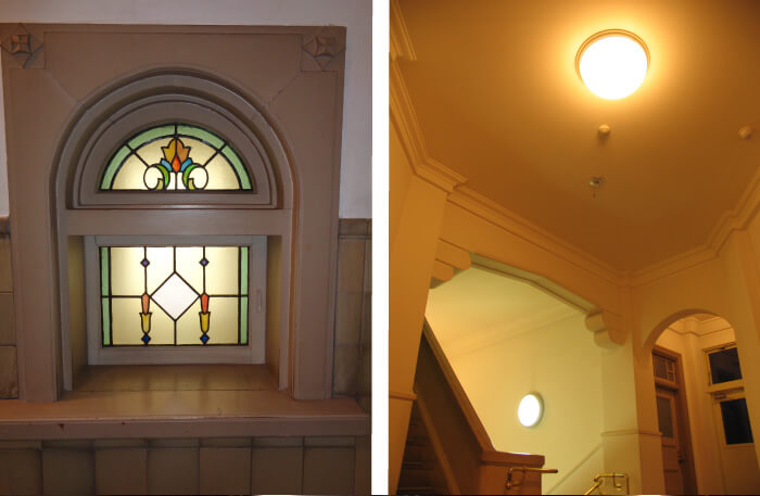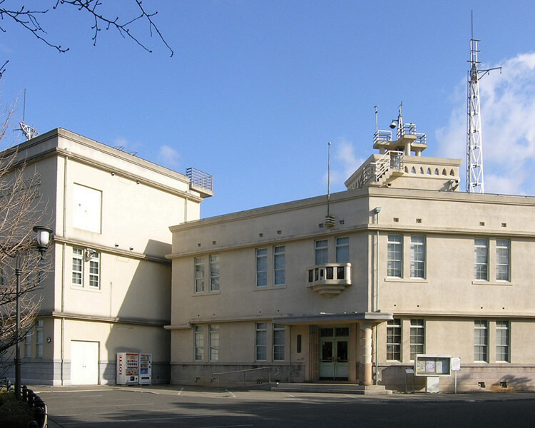 広島市南部,高さ約30mの山にある広島市江波山気象館。日本ではめずらしい「天気」や「気象」について学べる,日本初の気象をテーマにした博物館です。今から85年ほど前,1934年に建てられた,広島県立広島測候所,後(のち)の旧(きゅう)広島地方気象台(=天気だけではなく,地震(じしん),火山,海洋などの観測(かんそく)も行う気象庁の一組織)の建物が,昭和20年の原子ばくだんのひ害を乗りこえて保存され,1992年からは気象博物館に生まれ変わりました。洋館風の建物は,その内部の美しい装飾(そうしょく)や原ばくにもたえた建築そのものの技術の高さが認(みと)められ,広島市指定重要有形文化財(ひろしまししていじゅうようゆうけいぶんかざい)となっています。