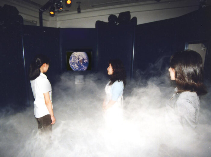 地球の表面を重なるように何層(そう)もおおっているものは「大気」と呼ばれています。その層の1つが「対流圏」です。地上から高さ10から16kmくらいの層を指し,「風」,「雲」,「かみなり」といった現象が起きます。まさにこのコーナーでは,てんじ物を通して対流圏で起こっている気象を体感できる貴重(きちょう)な機会です。