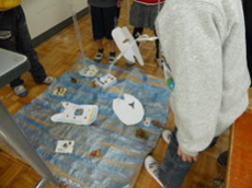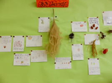 あきをたのしもう ・集めた落ち葉や木の実でどんなことができるか考える。 ![]() あきあそびの掲示 ![]() 話合いの様子 |