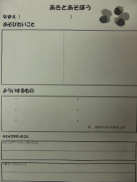 ・集めた材料を用いながら,実際に遊ばせ,作れそうなものや作りたいものを考えたり調べたりする。 ・考えたり調べたりしたことを共有できるよう掲示する。 ・ワークシートに準備するものや完成図など書き,活動への見通しをもたせる。 ![]() 1枚目のワークシート |
