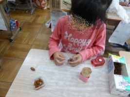 ・ ドングリ拾いに行き,一人ひとりが自分のドングリを手にすることができたので,子どもたちは「○○してみたい」と次の活動への意欲を持つことができた。また「あきのたからばこ」を作って保管することで,他の木の実や葉を集めるなど,様々な「秋」にも目を向けることができた。