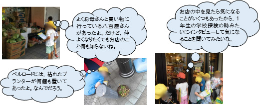 〇夏休み前の夏野菜の活動から,ベルロードにある店の存在とそこで働く人に気付く。