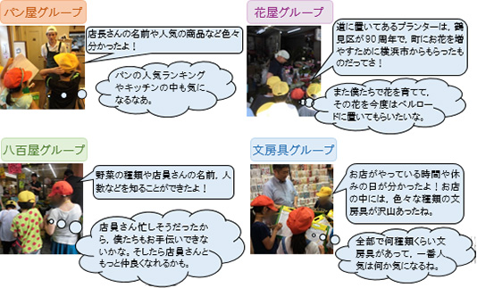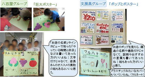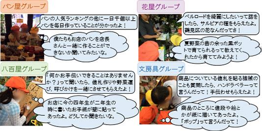 子ども達一人ひとりが,それぞれ興味をもった店の方々とかかわれるようにしたことで,子どもの活動の意欲を十分に引き出すことができた。