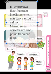自分の成長について聞き取ったことを,どのようにまとめるかを学習するために教科書を使って,カードに書かれている内容を参考に読みました。日本語で文章を読むことは出来る児童ですが,ポルトガル語の音声通訳を聞くことで今からやるべき事の内容がはっきりと分かり,自分が調べたことをまとめるときのヒントになった。