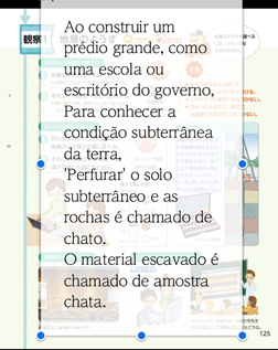 高学年になると,教科書に出てくる学習言語が難しくなる。地層のようすを調べる方法を学習する際に,「ボーリング」という単語がある。すでに習った球技の「ボーリング」と勘違いを起こしやすいが,マルチリンガル教科書を使って意味を確認する事が出来た。