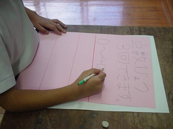 などと楽しそうに対話をしながら,看板を作り上げていた。