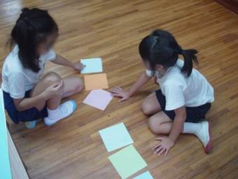 図5は,おもちゃランドの看板を作成するための6色ほどある折り紙の順番を話し合っている。