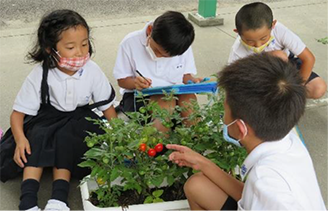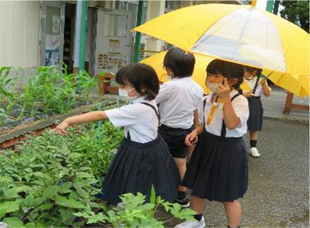 野菜を育てる活動を通して,野菜が育つ場所や変化の様子に関心をもち,世話の仕方を調べたり,人に聞いたりしながら愛着をもって世話をし,それらに生命があることや生長していることに気付くとともに,親しみをもって大切にすることができるようにする。