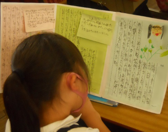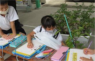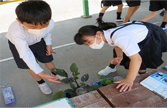 栽培活動を行う中で,それが育つ場所,生長の様子に関心をもって働きかけるとともに,植物に心を寄せ,よりよい生長を願って世話の仕方を考えたり工夫したり振り返ったりし,それを素直に表現している。 |