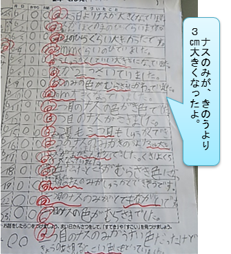 | 7 | ・ 実ができたときに観察し,記録する。 ・ 収穫し食べた感想などを記録する。 |