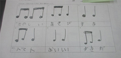 ○トマトの成長の動画を見て,効果音やオリジナルのリズムを作ることができる。 ・自分の思いに合ったリズムを考えられる。 |