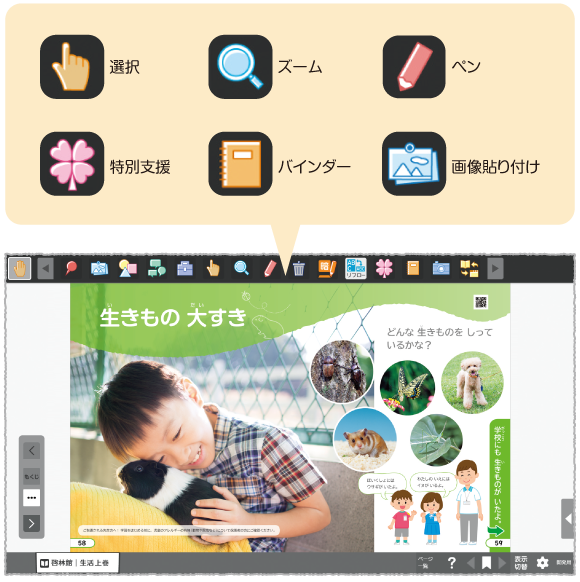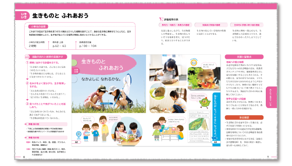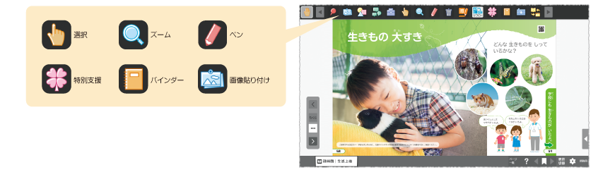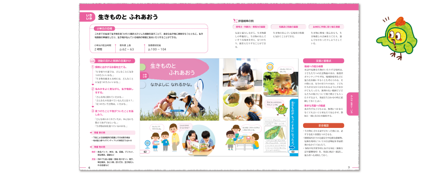 教科書と同じ紙面に言葉がけなどの役立つ情報を掲載。
