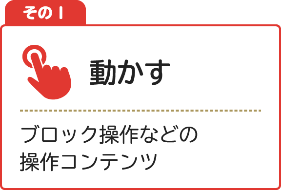 | 18 | ぶろっくを つかおう(ならべよう) | うごかす | |