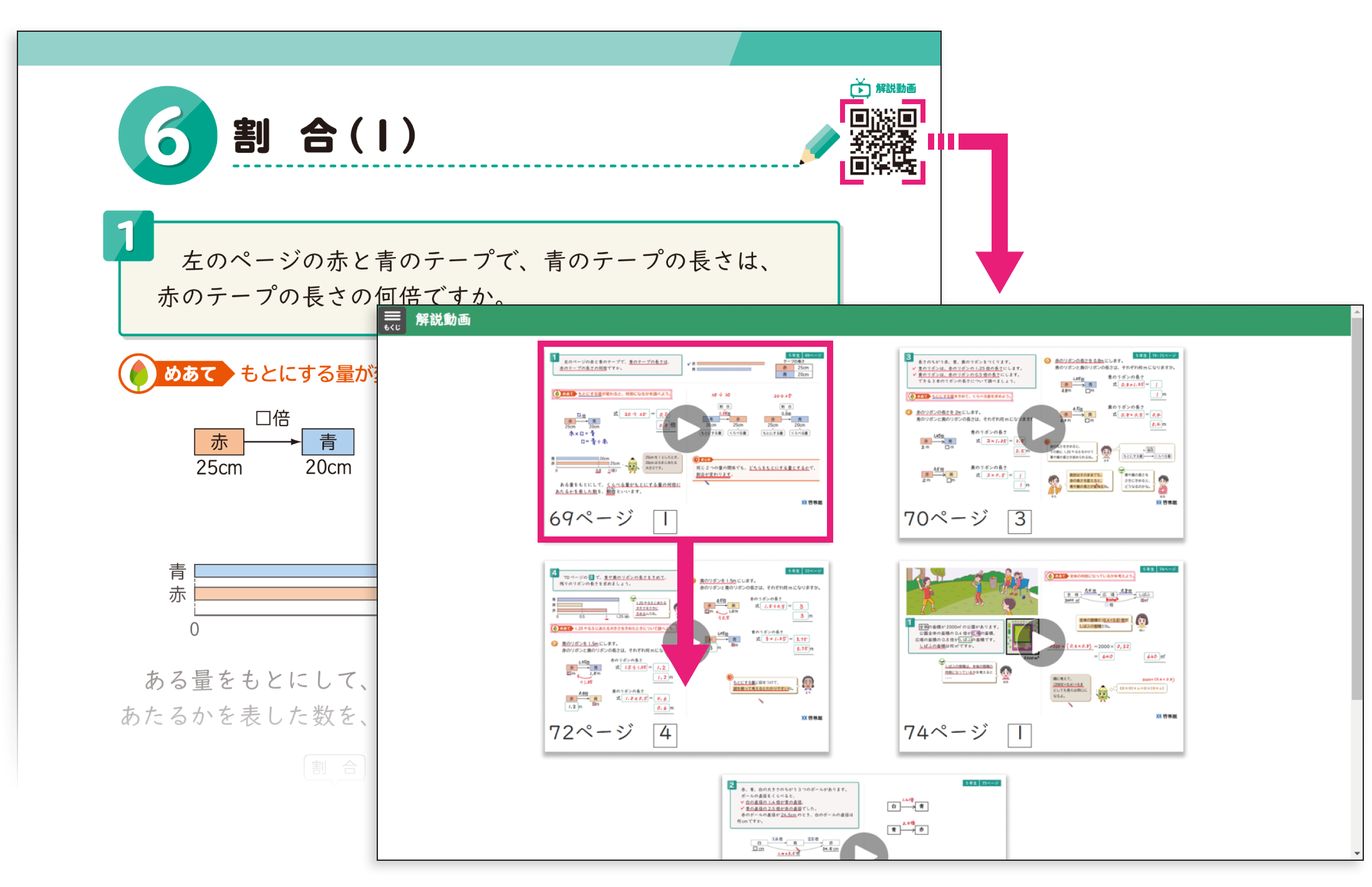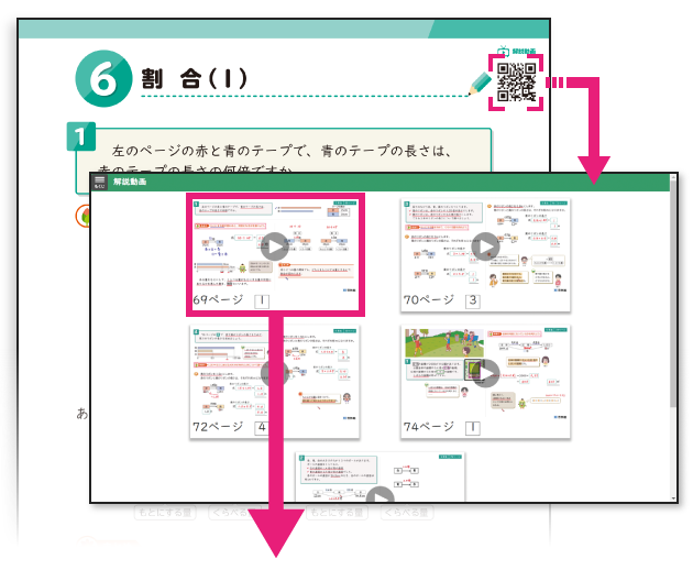 新しい学習の前にレディネスチェックを行い、既習内容を補充しておきたい児童には「解説動画」で学び直しをさせています。巻末「じゅんび」と「解説動画」を組み合わせることで、学習の入口がよりスムーズになりました。