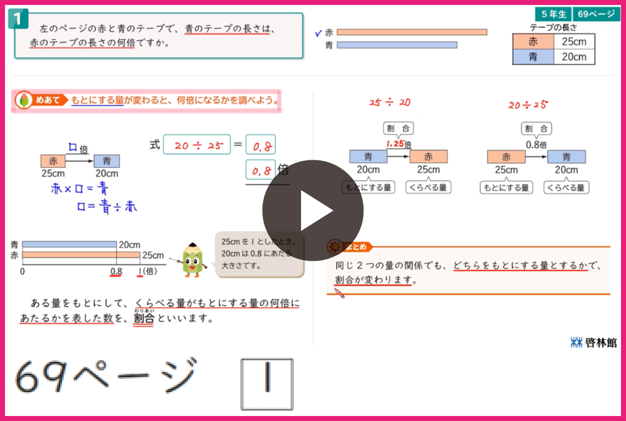 学級や児童の実態に応じて予習や反転学習を取り入れるときには、教科書だけではなく「解説動画」も事前に見て個々の理解を図っておくことで、協働的な学びや活用・探究に重点をおいた授業が進めやすくなります。