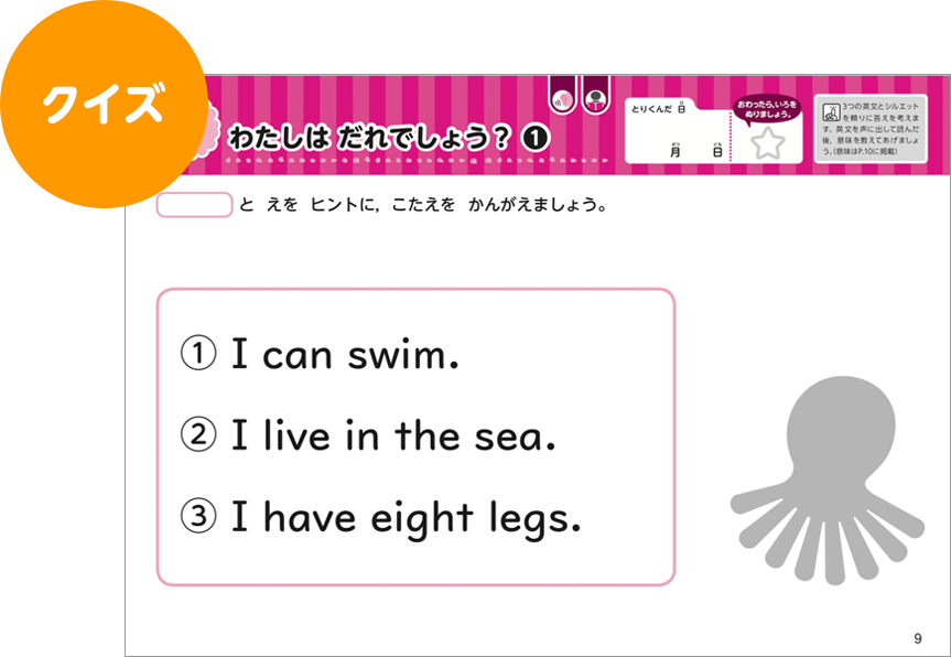 楽しいアクティビティがいっぱいの英語ワーク。10分ほどでできるので、短時間学習にもおすすめです。