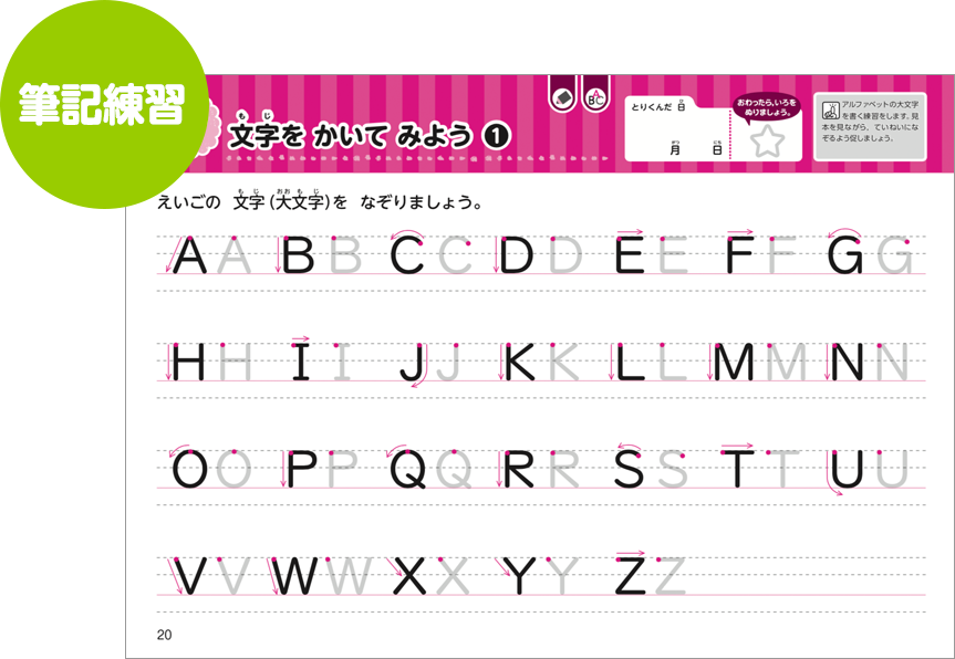 - バリエーション豊かな内容で子どもたちを飽きさせません。楽しいだけではなく、アルファベットの筆記練習など、学習要素も充実しています。