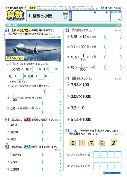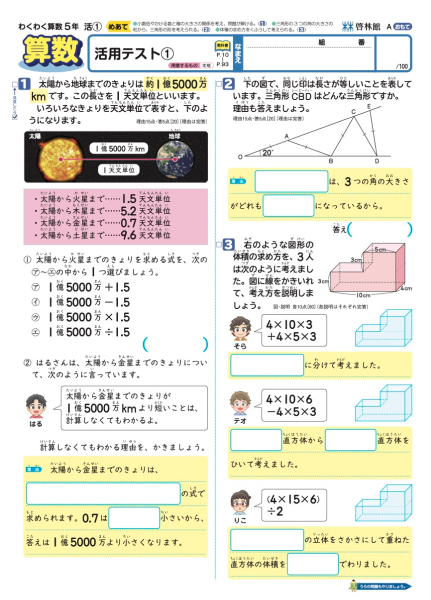 啓林館教科書「わくわく算数」完全準拠のテスト。基礎・基本の定着が確認でき、活用力が養える。3学期版。総ルビテストでお届けします。