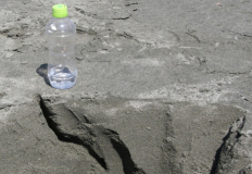 そこで,今回の授業では「現在の生物の生痕」(図3,図5,図6,図7)と「生痕化石」(図4,図8)を結びつけて観察を行うとともに,水たまりや水田が干上がった時に見られる「乾裂」(図9)のような「物理現象」の痕跡は「化石」と呼ばないことを強調した。すると学習者は化石の定義を正しく理解することができていた。