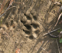 次の写真(図6,図7)を見てみると,どちらの写真も足跡がズレているのがわかる。この「生痕」には,イノシシやタヌキが夜中に餌をさがしている際に,ぬかるみで足を滑らせて「驚いた瞬間」が見事に記録されていた。