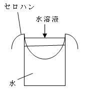 セロハンに水溶液を注いだときの現象について,粒子モデルを使って説明しよう。
