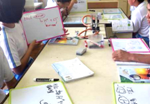 普段の授業も同じような感じで進みます。作成したWBに点数をつけたり,クイズ形式でまとめたりと先生の授業は意外性があります。タブレットPCで発表ビデオを作ったのもよい経験でした。もちろん,大切な内容が理解できているかを確認するために,教科書の内容振り返りやワーク学習でどれくらい理解しているか確認します。