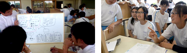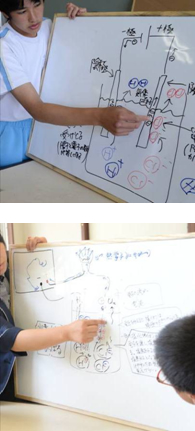 私の名まえは,「空歩(そらむ)」です。公立中学校の3年生です。今日は私の中学校の理科の授業を紹介します。2種類のホワイトボード(WB)を駆使して他班に説明したり,ほかの班の説明に「なぜ?」,「どうして?」と質問攻めにして意見を出させたりと,結構エキサイティングな授業をやっています。