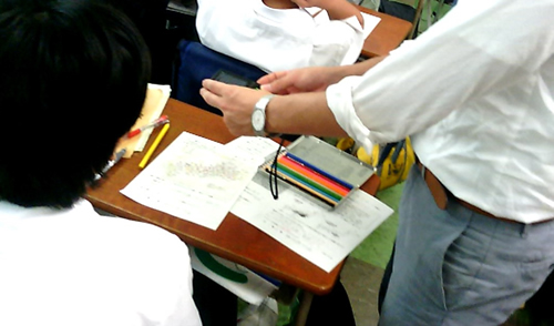 まず,実験前にデジタルカメラと班ごとのメモリーカードを配布します。