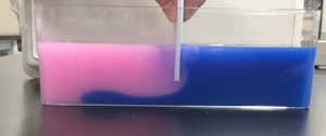 今回は繰り返し実験をおこなえるように,手軽さを重視して,PVAを加えずに取り組んだ。そのため,仕切り板を外した時に発生する渦が見えてしまう。仕切り板の材料を変更するなどして改善することが今後の課題である。