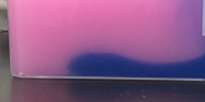 結果は動画のとおりである。青色の示温インクがピンク色の示温インクの下へと潜り込んでいく。