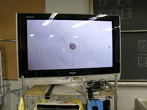 1.未受精卵をホールスライドガラスにとる。顕微鏡のピントをあわせ,そこに海水で希釈した精子溶液を1滴加える。再度,ピントを合わせる。