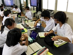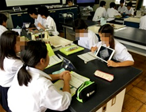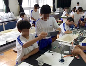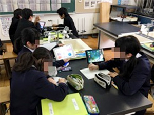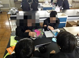 本実践において対象としたのは,平成28年度に本校へ入学してきた第一学年167名の生徒である。実践開始前に実施した事前の質問紙調査では,小学校段階において「理科の授業では,よく考えたり,意見を出したりする」,「理科の授業では,自分の考えた意見を表現することがある」といった活動経験が乏しい実態が見えてきた。そこで毎時間の学習課題を,例えば「校内の植物を観察して撮影し,特徴や周りのようすを伝えよう」というように,表現することを意識したものに設定した。加えて理科室に一人一台のiPadを自由に使用できる学びのツールとして準備し,常に授業のゴールとしての表現活動を考えながら学びを進めることができるようにした。