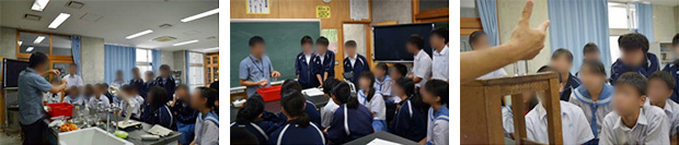 ウニの発生実験の取り組みは、平成4年の南大東中学校の1学級35名での授業から始まった。平地校での7学級、260名の規模での取り組みに際して、体育館での学年一斉授業の形態を取り入れ、理科の教師全員と学年職員全員でのTT授業で実施する形を作り上げた。以後4校での実践を重ね、今年で15回目を迎える。