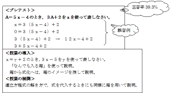 これは,プレテストの「x=y+2のとき,3x-5をyを使って表しなさい」