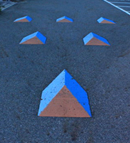 「立ち上がる平面図」は立体に見える平面図であり,細長くかくことで,離れたところから見ると立体に見える。トリックアートのような形でテーマパークであったり,走っている自動車の減速を促すための道路標示に使われたりしている。立体に見せるために,横から見たときの人の位置と立方体の位置の関係では,相似な三角形が存在しており,上から見たときの人の位置と立方体の位置の関係には,平行線と線分の比の関係が存在している。「立ち上がる平面図」は,相似な三角形の辺の比の関係を使うことで,平面上にかかれた図の辺の長さを導き出すことができる。実際に道路標示などで活用されていて,一見,数学と関係ないように思えるものが,実は数学によってその辺の長さの関係を解明することができ,数学の有用性を感じることができると考えられる。