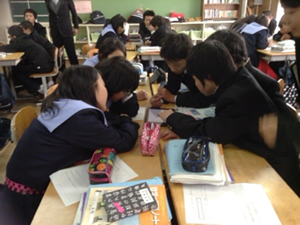- 活動は6人1班で行ったが,欠席のため3人で活動していた班があり,その班はとても意欲的に全員でとりくめていた。